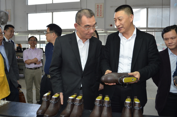 林毅夫主席一行到集团后首先参观了腾龙工厂,在参观工厂的同时林毅夫详细询问了解制鞋工艺、研发能力、产能产量、市场业态、自主品牌等情况,集团董事长陪同并详细介绍制鞋的工艺流程、生产能力、产品品质、技术研发及行业概况,毅夫主席对工厂的现场管理和生产秩序给予了肯定,并对生产管理、品质管控等提出了宝贵的意见和建议。